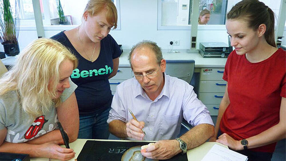 Nach dem Schulterbrand erarbeiteten die Teilnehmer mit den Chromadentinen der Keramiklinie HeraCeram Zirkonia 750 zunächst die Höcker des Oberkiefers und daraufhin die Höcker des Unterkiefers. Im Anschluss füllten sie die Flächen und Höcker im Seitenbereich der Zähne auf. Nachdem die grundlegende Struktur der Sechser angelegt war, wagten die Teilnehmer den zweiten Anstieg. Mit Opalschneide bauten sie die Innenseite der Höcker aus, mit Transpamasse umrandeten sie den Zahn. Erst danach wurde der Schmelz geschichtet. Die letzten Höhenmeter bestanden in der Individualisierung, in der die Kontaktpunkte definiert und die Okklusalflächen patientenbezogen eingeschliffen wurden. Für ein ästhetisches Finish, zum Beispiel bei Fissuren, sorgte zum Schluss die Verwendung von Malfarben der Linie HeraCeram Stains universal.