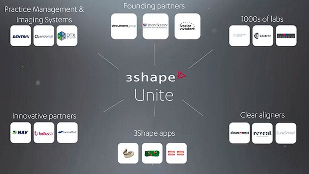 Um eine absolut offene Plattform anbieten zu können, haben sich die führenden Unternehmen der Branche, Henry Schein, Ivoclar Vivadent und die Straumann-Gruppe, mit 3Shape als Unite-Gründungspartner zusammengetan.