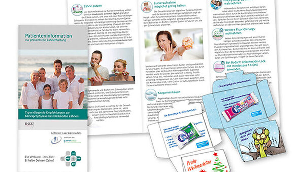 Ab sofort können Praxen ihren großen und kleinen Patienten eine Freude bereiten und ihnen nach der Behandlung den neuen Extra Professional Spearmint oder den Extra for Kids Bubble Gum im Weihnachtsdesign mitgeben. Zusammen mit den drei Leitlinien-Tipps zur täglichen eigenstän-digen Kariesprophylaxe – Zähne putzen, wenig Zucker, Kaugummi kauen – erinnern sie daran, dass ein maßvoller Genuss von Zucker & Co. unge-trübt bleiben kann, wenn man anschließend die Zähne pflegt. Das Weih-nachtsangebot finden Zahnarztpraxen unter „Sonderaktion“ im Shop auf der Fachwebsite www.wrigley-dental.de, wo auch die Kariesprophylaxe-Leitlinie der Deutschen Gesellschaft für Zahnerhaltung als kostenlose Patientenbroschüre hinterlegt ist.