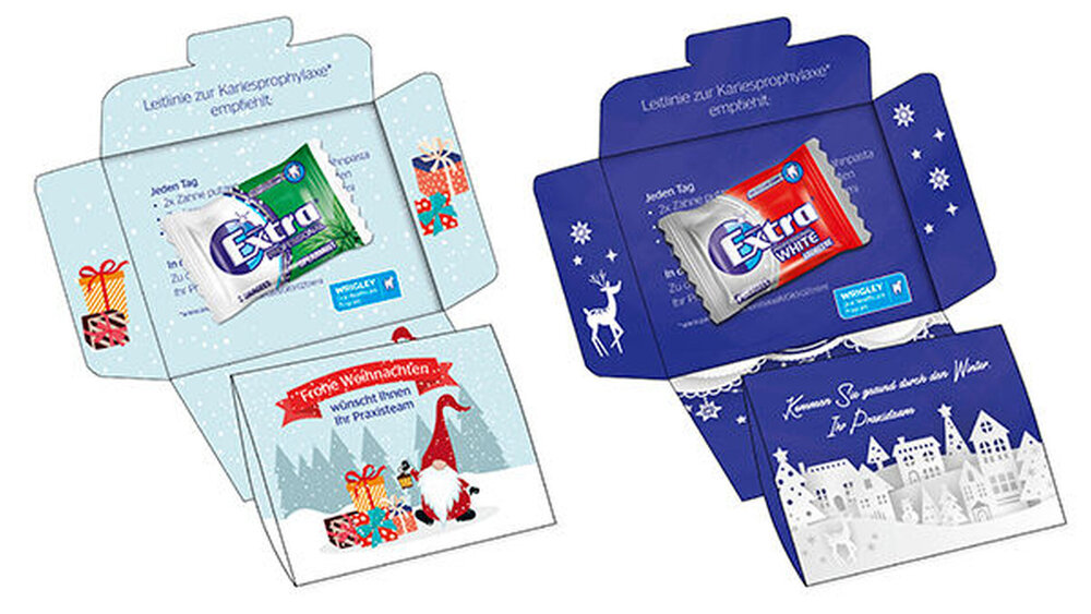 Mit einem Extra-Kaugummi-Päckchen im Weihnachts- oder Winterumschlag können Zahnarztpraxen jetzt ganz einfach Adventsstimmung verbreiten.