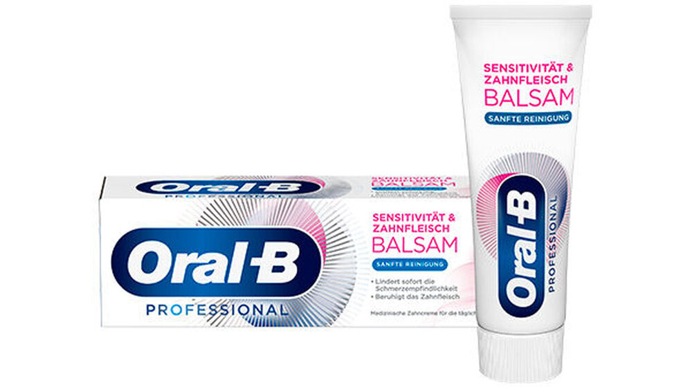 Die neue Oral-B Sensitivität und Zahnfleisch Balsam Zahncreme lindert sofort und effektiv Schmerzempfindlichkeit und beruhigt zudem das Zahnfleisch.