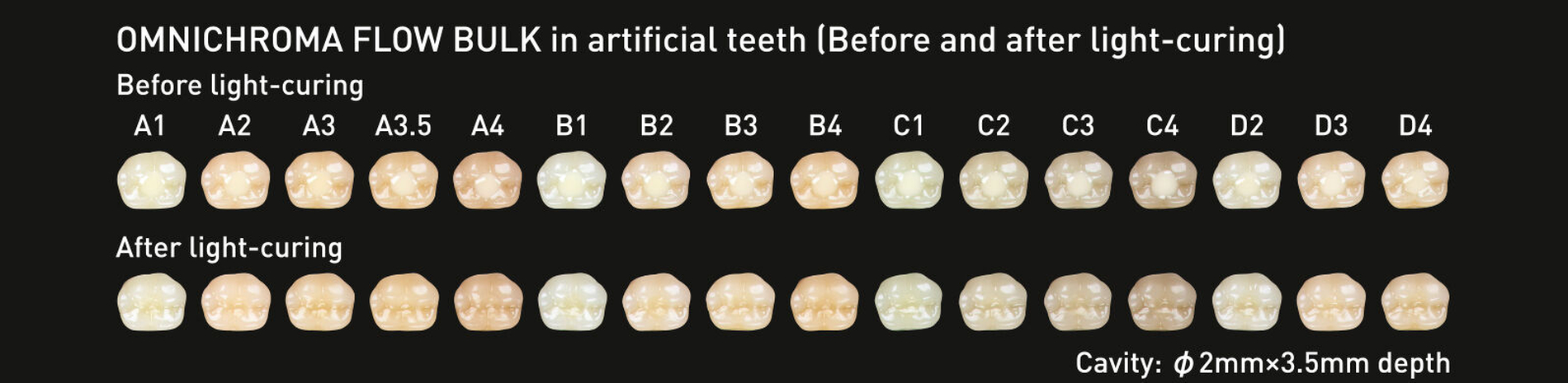 Genau diesem Ansatz folgt die OMNICHROMA-Kompositlinie des japanischen Herstellers Tokuyama. Bereits der Name des Materials gibt die Richtung vor: Jede (lateinisch: omni) Farbe (griechisch: chroma) der 16 klassischen Vita-Zahnfarben von A1 bis D4 lässt sich mit nur einer Komposit-Schattierung herstellen.