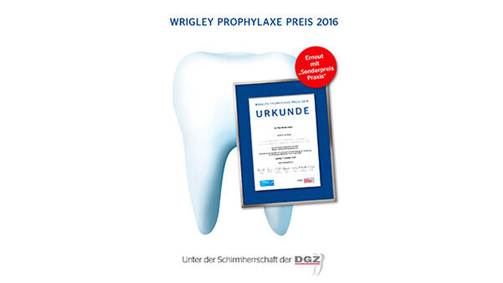 Der Wrigley Prophylaxe Preis ist eine der renommiertesten Auszeichnungen auf dem Gebiet der Kariesprophylaxe und steht unter der Schirmherrschaft der Deutschen Gesellschaft für Zahnerhaltung (DGZ). Gestiftet wird sie alljährlich vom Wrigley Oral Healthcare Program (WOHP), der Zahn- und Mundgesundheitsinitiative von Wrigley. Der Preis prämiert herausragende Arbeiten zur Forschung und Umsetzung der Prophylaxe. Das Auswahlverfahren wird von einer unabhängigen Expertenjury geleitet, die sich aus Professoren der Zahnerhaltungskunde, dem Präsidenten der DGZ sowie einem Vertreter aus dem Öffentlichen Gesundheitswesen zusammensetzt. Aufgrund der großen thematischen Bandbreite und hohen Qualität der Einreichungen steht die Jury Jahr für Jahr vor einer anspruchsvollen Aufgabe, der sie sich mit Freude widmet.