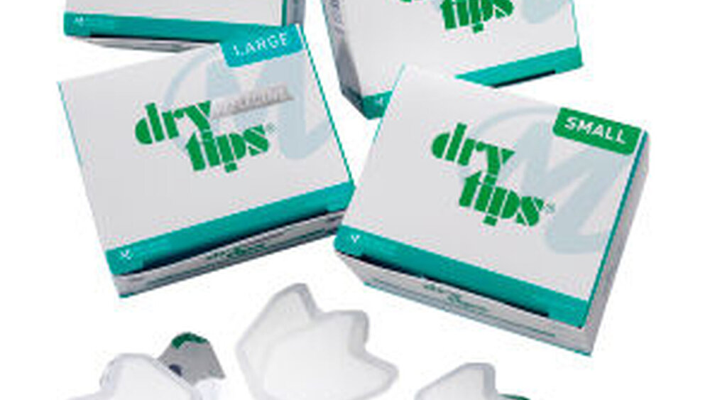 Die Trockenlegung ist bei zahlreichen Maßnahmen notwendig, beispielsweise bei Füllungen, Abformungen, der Kariestherapie und in der Kieferorthopädie. Die flachen Dry Tips benötigen wenig Platz und vereinfachen dadurch das Prozedere in der Mundhöhle. Sie haften gut an der Schleimhaut und sind so elastisch, dass sie sich der Mimik anpassen. Sie bleiben am vorgesehenen Platz, speichern die Flüssigkeit ohne sie wieder abzugeben und werden unkompliziert mit Wasserspray entfernt.