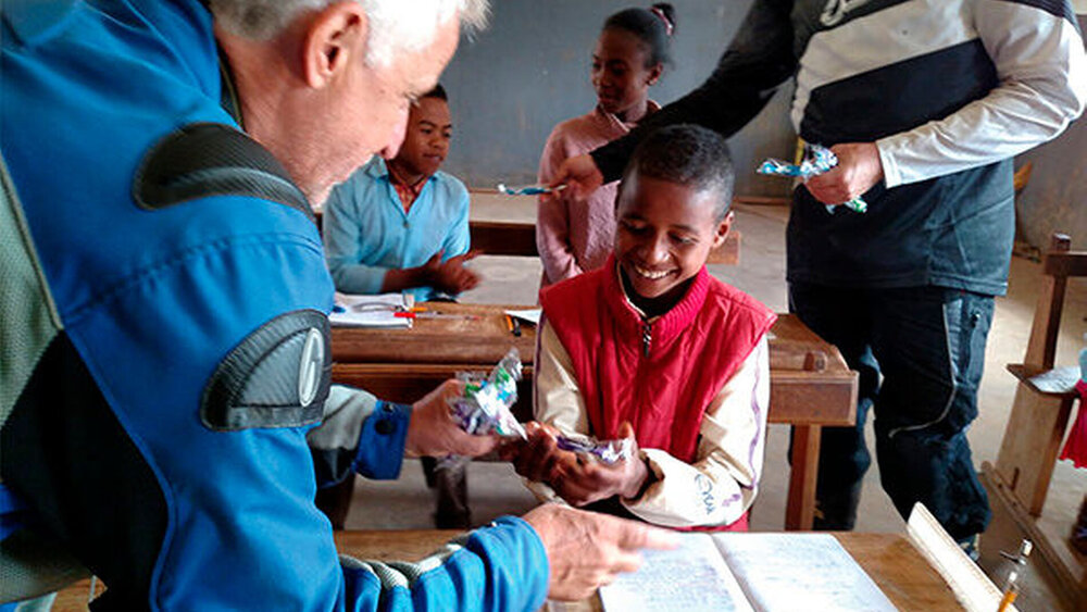 Bei der Aktion „Back to School“ wiederum werden zum Schuljahresbeginn Ranzen mit den benötigten Heften und Stiften ausgerüstet und mit kleinen Extras wie Spielzeug, Zahnbürste und Zahnpasta bestückt. Rund um den Globus unterwegs ist außerdem ein Team von Dentalhygienikerinnen, das unter anderem Waisenhäuser besucht. Die Kinder erhalten eine kostenlose Professionelle Zahnreinigung inklusive Fluoridierung und Versiegelung und werden in der Zahnpflege unterrichtet.