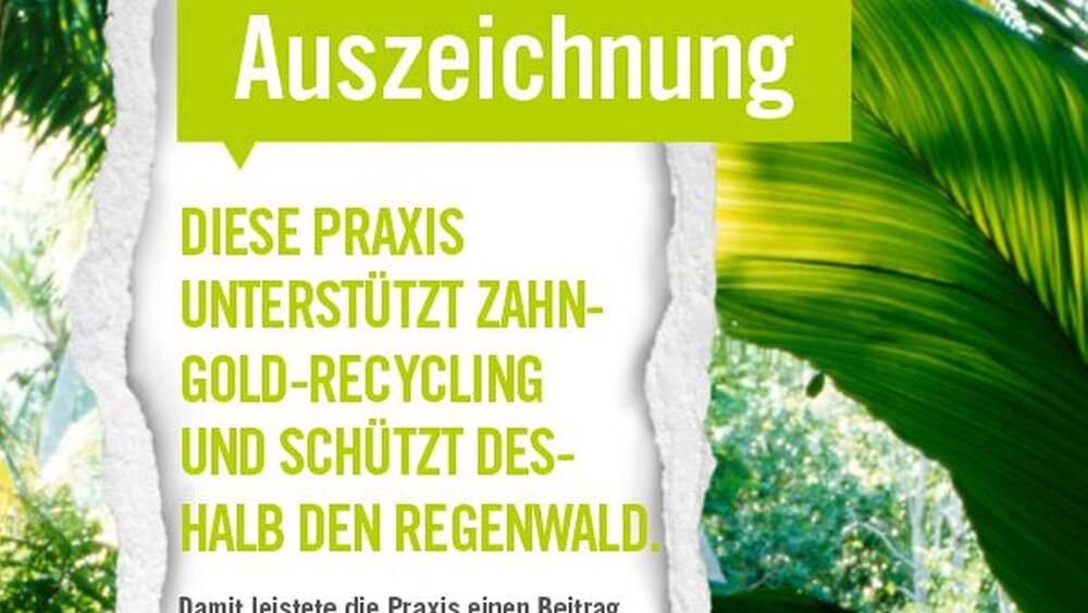 Zahngold-Recycling schützt also den Regenwald und jede Praxis kann Nachhaltigkeit leben. Dazu wurde das Aktions-Paket entwickelt. Es enthält eine Sammelbox, eine Auszeichnung, Aufsteller, Patienteninformationen, Terminkarten, Poster und individualisierbare Texte für Homepage, Social Media und PR-vor-Ort. Jede Praxis kann das kostenlose Aktions-Paket bestellen: