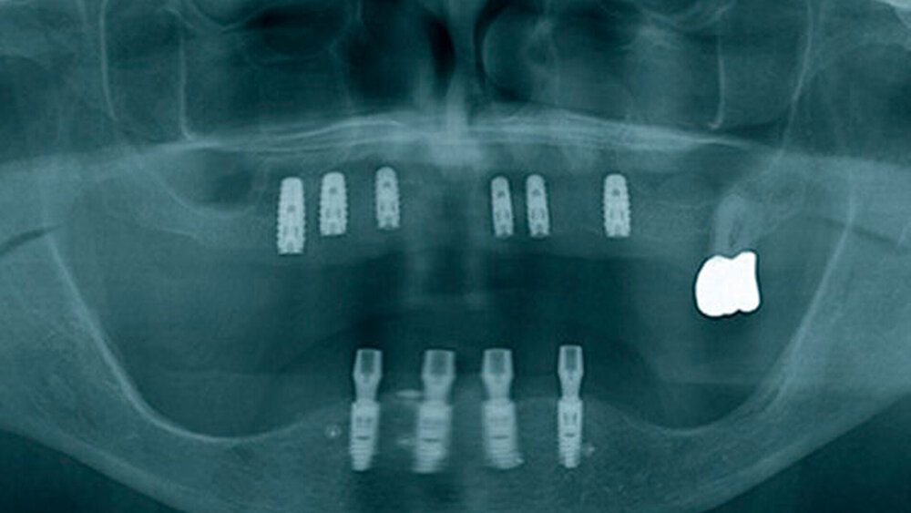 Definitiv die konventionelle Versorgung, vor allem wegen der möglichen Belastung (Dauer der Eingriffe) und der besseren Hygienemöglichkeiten. Sollte der Patient nicht in der Lage sein, mit Interdentalbürstchen zu reinigen, wählen wir im Alter auch die herausnehmbare Variante. Gerne verblocken wir die Implantate primär, d. h. dann eine Stegversorgung. Ein regelmäßiger Implantatrecall ist aber Pflicht bei allen unseren Implantatpatienten.
