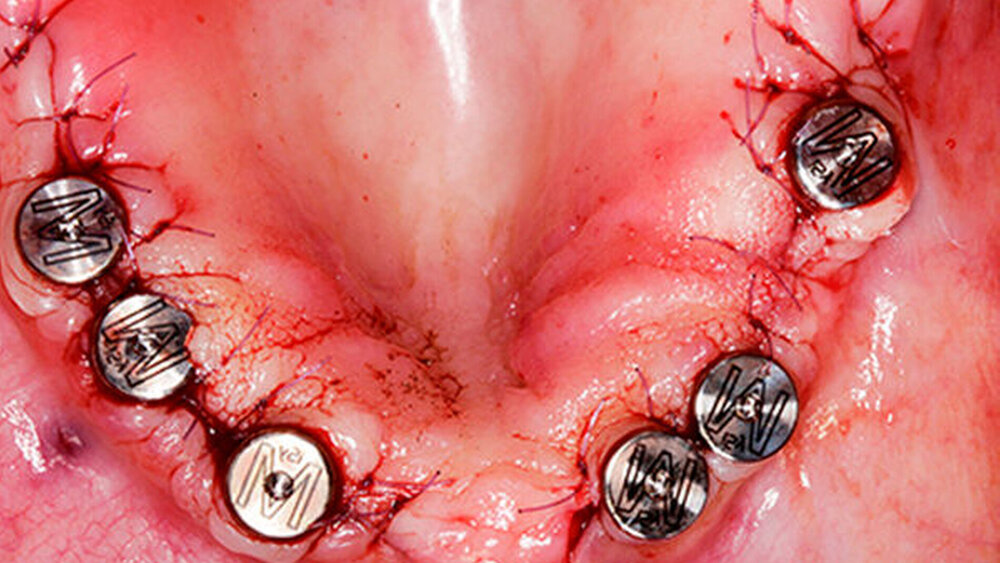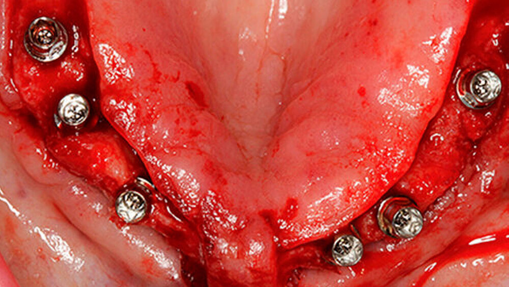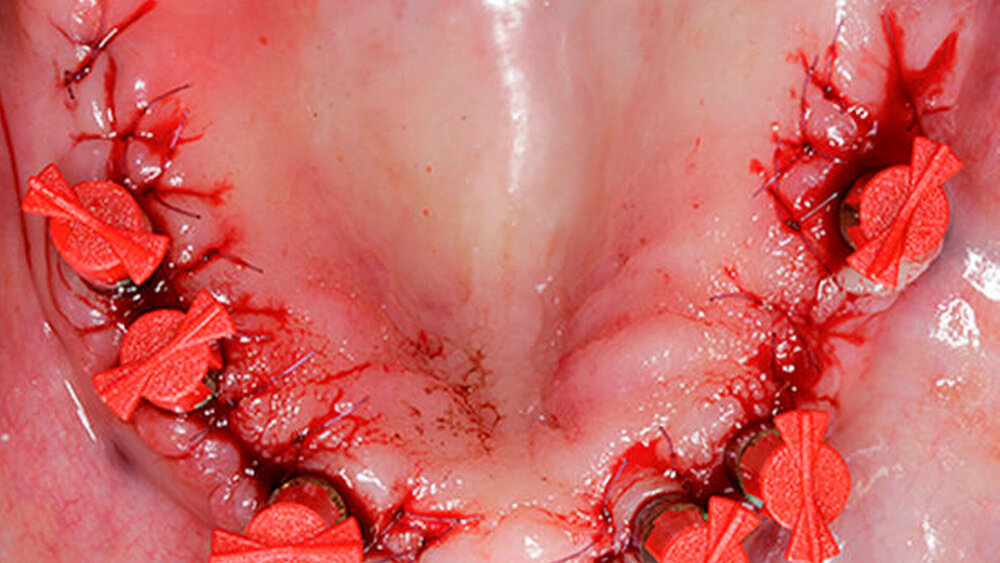 Das hat nichts mit den unterschiedlichen Protokollen zu tun. Der Übergang zwischen Restauration und dem Abutment darf nicht sichtbar sein, egal bei welchem Protokoll. Entweder werden die Implantate deshalb tiefer gesetzt oder der Knochen wird abgetragen. Unproblematischer ist das im Unterkiefer, die Lippe und die Lippenbänder verdecken viel. Wir implantieren – wann immer das geht – erst in der 3er-, 4er-, 5er-Position, nicht direkt in der Front.