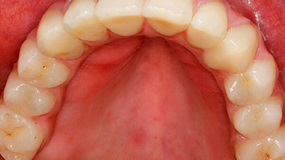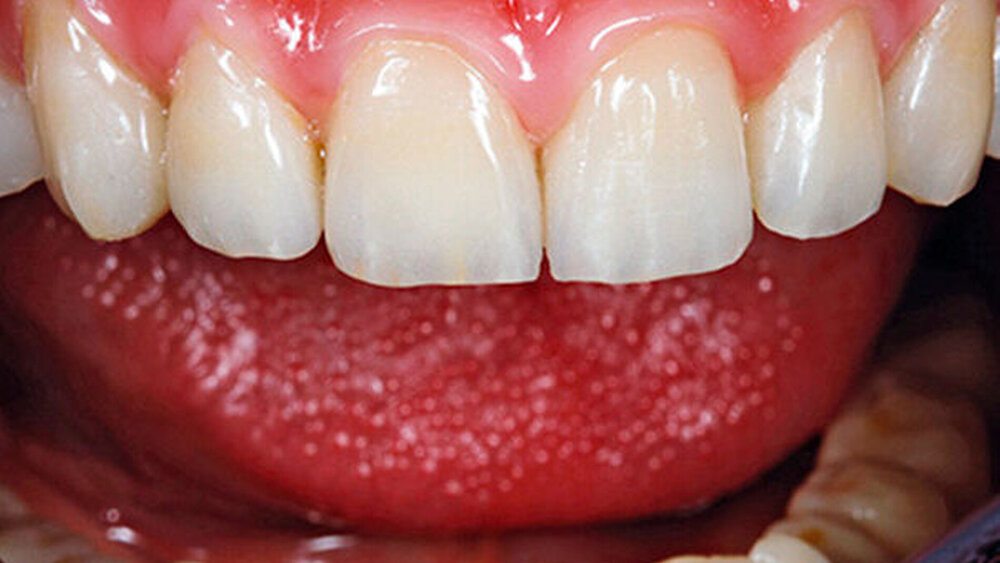 Selbst wenn das Provisorium basal sehr gut konfiguriert, poliert und auch perfekt verschraubt wird, kann es in den ersten Wochen nach der OP Entzündungen provozieren. Denn zwischen Provisorium und Wunde bleiben häufig Speisereste hängen, die schwierig zu entfernen sind. Die Interimsversorung vor der iSy-Brücke lässt sich dagegen einfach zur Reinigung herausnehmen.
