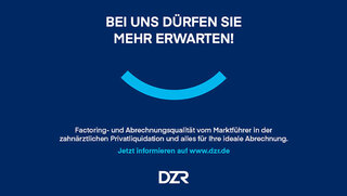 Das Deutsche Zahnärztliche Rechenzentrum (DZR) ist ein Abrechnungs-, und Factoringunternehmen für niedergelassene Zahnärztinnen und Zahnärzte, MKG-Praxen und weitere dentale Facharztbereiche. Über 300 Mitarbeiter stehen unseren über 7.000 Kunden mit Rat und Tat zur Seite – deutschlandweit und persönlich. In Bayern sind wir mit der ABZ-ZR Zahnärztliches Rechenzentrum für Bayern GmbH vertreten. Mit über 40 Jahren Erfahrung sind wir heute Marktführer in der zahnmedizinischen Privatliquidation. Bei uns erhalten Sie alles rund um die zahnmedizinische und zahntechnische Abrechnung und unsere Kunden profitieren täglich von diesem Erfahrungsschatz. Kern unserer Leistungen ist die spürbare administrative Unterstützung, die Absicherung gegen Forderungsausfälle und die Bereitstellung von planbarer Liquidität. Ihren Patientinnen und Patienten bieten wir attraktive und komfortable Teilzahlungsmöglichkeiten mit kulanten Lösungen bei Zahlungszielverlängerungen sowie einen persönlichen Erstattungsservice.