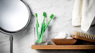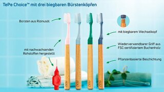 TePe GOOD: Produkte aus erneuerbaren Rohstoffen, die in der Lage sind, CO2aus der Atmosphäre aufzunehmen; Auftakt machte zur IDS 2019 die TePe GOOD Zahnbürste, welche aus biobasierten Kunststoffen besteht – Polyethylen für den Griff, das aus Zuckerrohr gewonnen wird und Polyamid für die Borsten, das zu 100 Prozent aus Rizinusöl stammt.