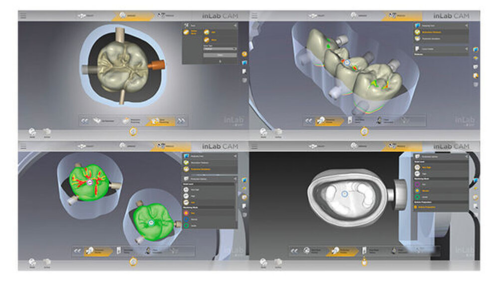 Zusätzliche Analysewerkzeuge der inLab CAM Software sorgen für ein hohes Maß an Sicherheit. So bietet die neue Produktionssimulation auf Basis von Positionierung, Anstiftung und Werkzeugkonfiguration erstmalig auch die Vorschau auf das Produktionsergebnis. Zudem können Objektwandstärken vor der Bearbeitung überprüft werden.