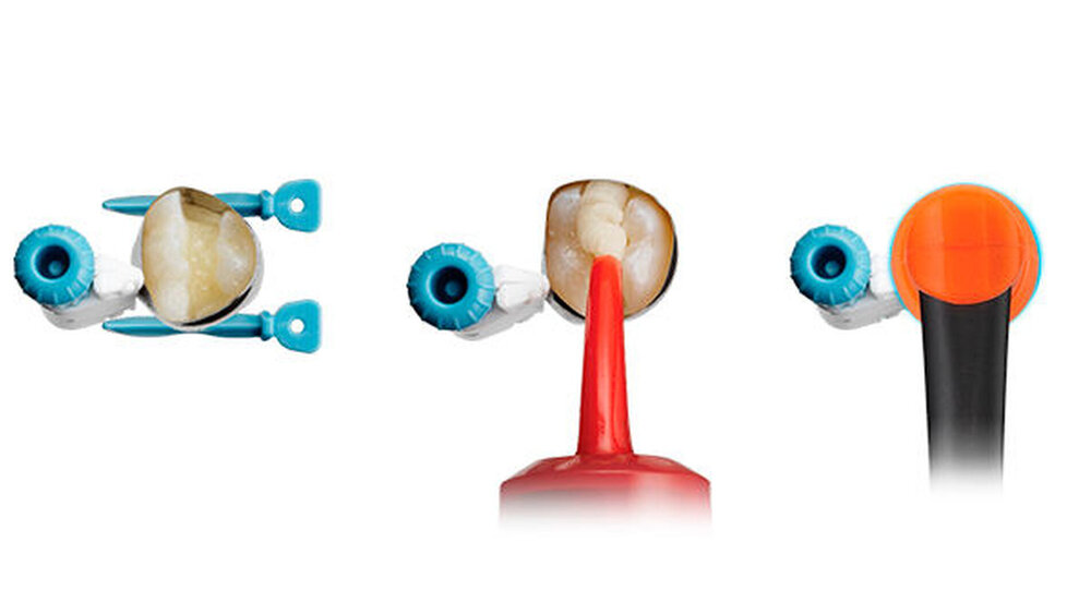 Das neue in drei Größen erhältliche Vollmatrizensystem Palodent 360 eignet sich auch ideal für die Anwendung in Kombination mit Surefil one. Das innovative Design ermöglicht eine anatomisch korrekte Kontaktpunkterstellung ohne störende Halter oder Applikatoren – auch bei ausgedehnten Präparationen. Die vorgeformten Matrizenbänder führen zu einer natürlichen und funktionellen Versorgung, die wenig Nacharbeit erfordert. Der kompakte integrierte Spannmechanismus ist mithilfe eines Daumenrades einfach zu bedienen, für einen hervorragenden Zugang und optimale Sicht auf den Arbeitsbereich bei gleichzeitig hohem Patientenkomfort.