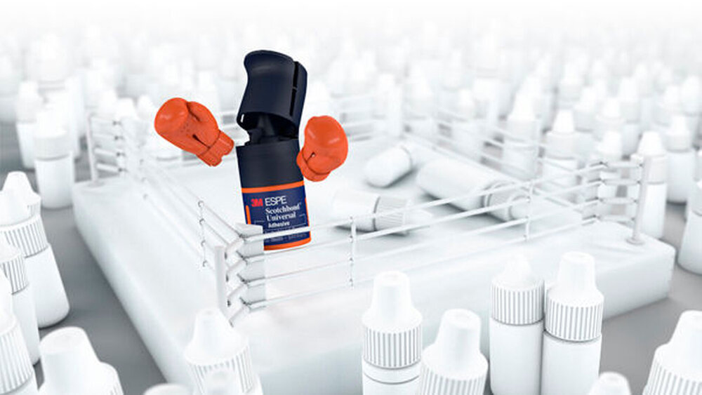 Positiv überrascht sind oft die Teilnehmer von Veranstaltungen mit dem Titel „Schlag 3M“. Bei diesen Events können Zahnärzte eigenhändig ihr bevorzugtes Adhäsiv gegen Scotchbond Universal testen. Für den Vergleich werden beide Adhäsiv-Systeme zur Befestigung von Composite auf Rinderdentin eingesetzt; anschließend wird die Adhäsionskraft bestimmt. Mehr als 3.000 Messungen wurden bislang allein in Deutschland durchgeführt. Die Erfolgsbilanz von Scotchbond Universal: Im direkten statistischen Vergleich zeigte es bereits bei erstmaliger Anwendung höhere Haftwerte als das mitgebrachte Adhäsiv.