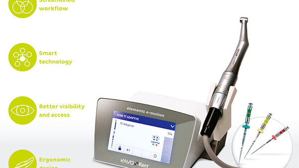 KaVo Kerr präsentiert den neuen Endodontie-Motor KaVo Kerr elements e-motion mit verbesserter Adaptive-Motion-Bewegung.