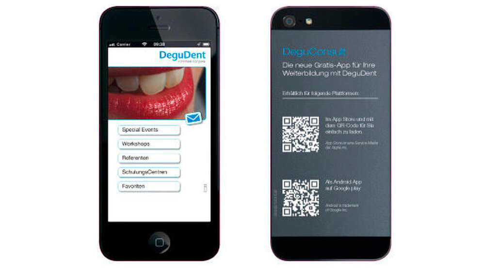 Ein „Klick“ auf die DeguConsult-App lohnt sich also in jedem Fall – einfach den abgedruckten QR-Code einscannen, Download starten und loslegen. Wer noch kein Smartphone oder Tablet-PC besitzt, wendet sich wegen des aktuellen Kursprogramms jetzt an seinen DeguDent-Berater oder an das Kurs- und Eventmanagement Frau Rena Merz Tel.: 06181 / 59-5704, Frau Mechthild Kilb Tel.: 06181 / 59-5915.