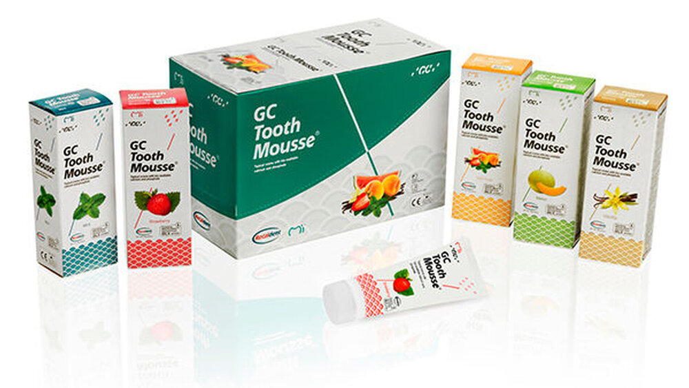 Zu diesen gehören die remineralisierenden Zahnschutzcremes GC Tooth Mousse und GC MI Paste Plus. Dank ihres bewährten CPP-ACP-Komplexes (RecaldentTM) sind die Cremes erfolgreich auf dem Gebiet der Oralprophylaxe. Die Calcium- und Phosphat-Ionen, gewonnen aus dem Milchprotein Kasein, remineralisieren Schmelzläsionen und stellen das orale Mineralstoffgleichgewicht bei Patienten mit erhöhtem Kariesrisiko wieder her. GC MI Paste Plus enthält darüber hinaus 900ppm Fluorid-Ionen, so dass Remineralisation und Fluoridierung ideal miteinander kombiniert werden – ein weiteres Plus für Patienten mit hohem Kariesrisiko, dentaler Erosion oder vermindertem Speichelfluss.
