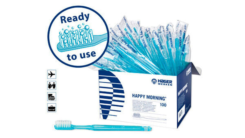 Die Zahnbürsten sind hygienisch einzeln verpackt, sowie mit und ohne Zahnpasta erhältlich. Weitere Produkte aus der Happy Morning Reihe sind die Happy Morning Xylitol (Borsten mit xylitolhaltiger Zahnpasta imprägniert) und das Happy Morning Travel Kit (Zahnbürste und erfrischende Zahnpasta).