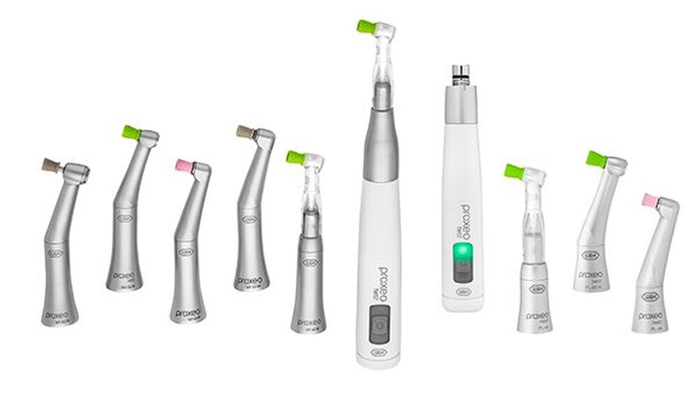 Konkret setzt sich das W&H Prophylaxe-Segment im Bereich Politur aus folgenden Produkten zusammen: Dem Handstück Proxeo Twist Cordless mit kabelloser Fußsteuerung und LatchShort Winkelstückaufsatz. Dem Proxeo Twist LatchShort Prophylaxe-Winkelstück für die dazugehörigen Kelche und Bürsten. Wie der Name bereits vermuten lässt, sorgt der kleine Kopf in Kombination mit den LatchShort-Aufsätzen für eine bis zu 4mm geringere Arbeitshöhe. Zum Sortiment zählt außerdem das Proxeo Winkelstücke für marktübliche Prophylaxekelche und -bürsten mit 2,35 mm Schaft für das System Universal oder System Young.
