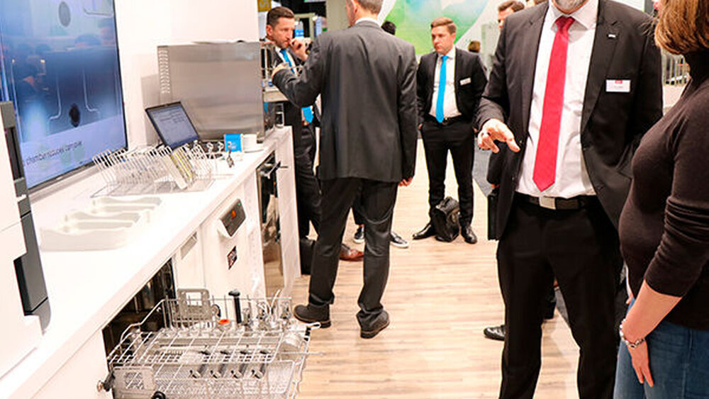 Wer an den Stand von Miele in Halle 10.2, Stand O50-P51 kommt, sieht neben den bekannten Dental-Produkten des Unternehmens auch eine Waschmaschine und einen Wäschetrockner.