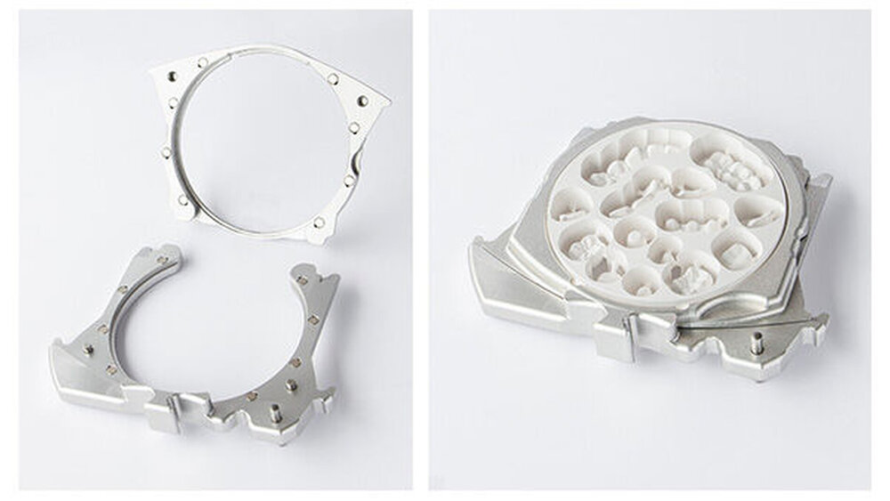 Beim QuickFrame werden die Rohlinge durch Magnete effizient fixiert. Möglich ist das Einspannen von Ronden aus Kunststoff wie PMMA, Zirkon und natürlich auch Wachs. Mit jeder neuen S5 liefert vhf ab sofort neben den gewohnten acht Standard-Haltern ohne Mehrkosten einen innovativen QuickFrame-Magnethalter. Der QuickFrame ist als kosteneffizientes Zubehörteil für die S5 und S2 erhältlich.