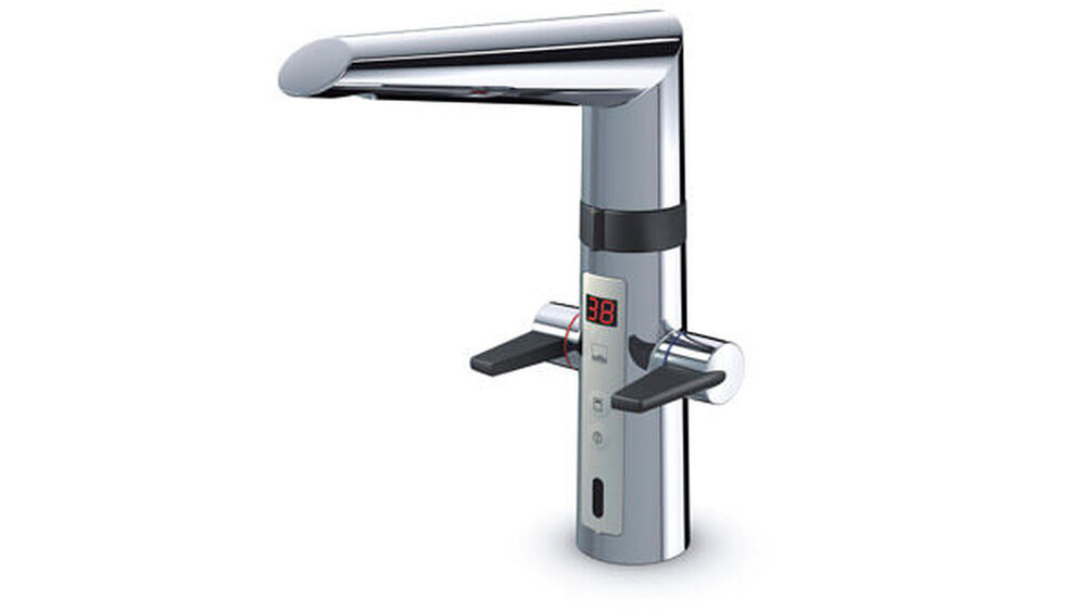 Mit den beiden griffigen Hebeln können Sie schnell Wasser in anderer Temperatur als der voreingestellten erhalten. Das hohe Design ermöglicht viel Platz für Arbeiten unter dem Auslauf. Ab sofort erhältlich bei Roos Dental inklusive einem 20,- Euro-Gutschein. Varianten mit Batteriebetrieb oder Stromanschluß sowie Niederdruck stehen ebenfalls ab 172,- Euro zur Auswahl.