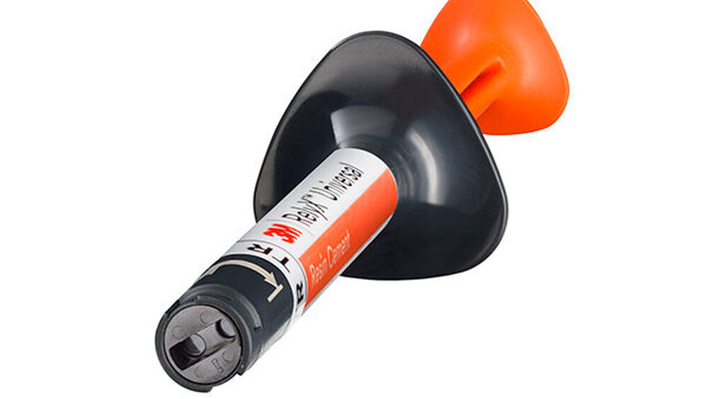 Die 3M RelyX Universal Automix-Spritze mit der 3M RelyX Universal Mikro-Mischkanüle ist kleiner, hygienischer zu lagern und materialsparender als herkömmliche Automix-Spritzen. Zudem wird die Menge an Plastikabfall um 50 Prozent reduziert.