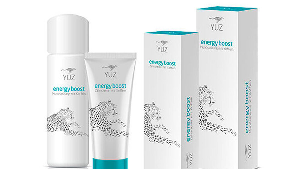 Compliance-Kick für den Patienten: Denn YUZ energy boost Zahncreme und Mundspülung zur häuslichen Oralprophylaxe bieten neben ihren zahnmedizinisch anerkannten Inhalts-stoffen (u.a. Fluoridgehalt 1.450 ppm bzw. 450 ppm) einen „Extra-Wach-Effekt“ durch Koffein. Eine 2-minütige Anwendung mit 1 bis 1,5 ml Zahncreme bzw. das Spülen mit 15 ml Mundspülung entspricht der Koffein-Wirkung einer Tasse Kaffee. So wird für Patienten aus dem täglichen Pflichtprogramm im Badezimmer ein besonders vitalisierendes Erlebnis. Dröge Mundhygiene war gestern!