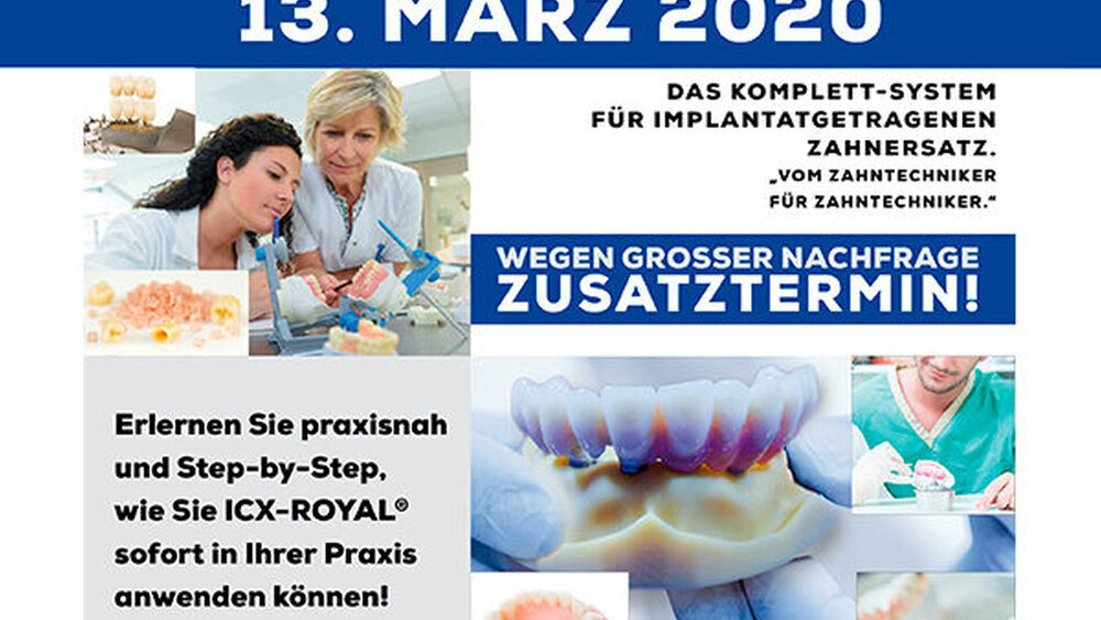 Aufgrund der hohen Nachfrage der ICX-Royal Fortbildung der medentis medical hat das Unternehmen einen Zusatztermin am 13. März 2020 angesetzt.