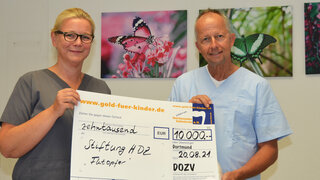 Dortmunder ZahnärztevereinSpenden für Flutopfer übergeben Der Dortmunder Zahnärzteverein (DOZV) unterstützt die vom Hochwasser stark betroffene Kolleginnen und Kollegen mit einer Spende von 10.000 Euro an die Stiftung Hilfswerk Deutscher Zahnärzte (HDZ). 24.08.2021 GesellschaftPraxis
