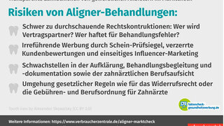 Untersuchung der VerbraucherzentraleGewerbliche Aligner-Anbieter? Nicht empfehlenswert! Sie umgehen gesetzliche Regeln, machen teils irreführende Werbung und klären schlecht auf: Die Verbraucherzentrale hat die Geschäftsmodelle gewerblicher Aligner-Anbieter in Deutschland untersucht. 27.08.2021 PolitikAligner