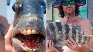 Skurrile AnglerfreudenAngebissen: Der Fisch mit den menschlichen Zähnen In North Carolina freuen sich Angler ganz besonders über die Sträflings-Meerbrasse, deren Zahnreihen dem menschlichen Gebiss ziemlich ähnlich sind. 06.08.2021 Gesellschaft