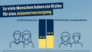Bundesministerium für Landwirtschaft, Ernährung und Heimat (BMLEH)Die Deutschen leiden an Jodmangel Das aktuelle Jodmonitoring zeigt: Die Versorgung ist rückläufig. 32 Prozent der Erwachsenen und 44 Prozent der Kinder und Jugendlichen in Deutschland weisen ein erhöhtes Risiko für eine Unterversorgung auf. 05.06.2025 Gesellschaft