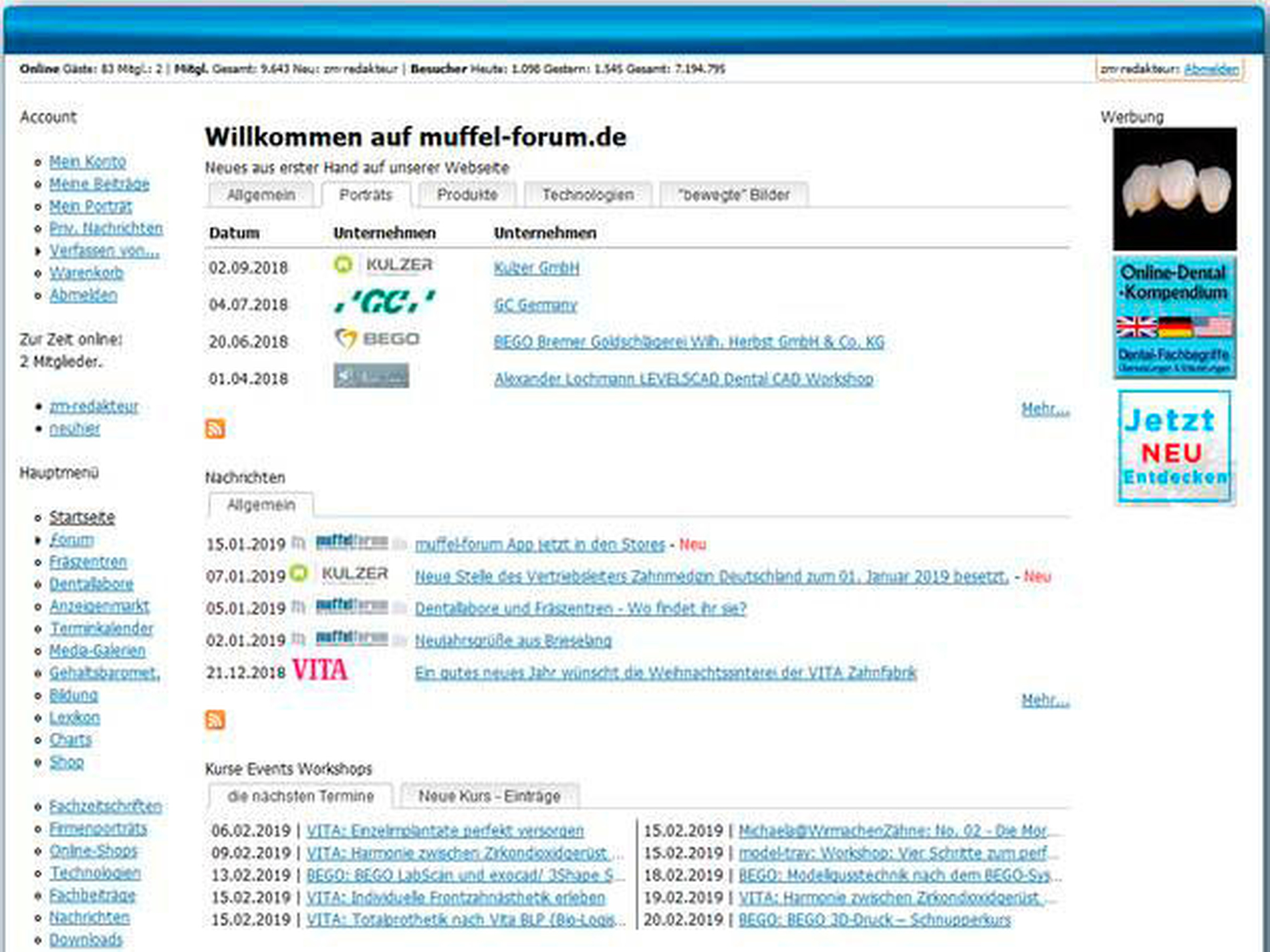 Zusätzlich bietet die Plattform einen Terminkalender mit Fortbildungsveranstaltungen, Produktbeschreibungen und Firmenporträts.