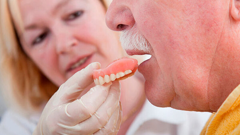 Die Zähne und den Zahnersatz regelmäßig professionell in derZahnarztpraxis reinigen lassen.
