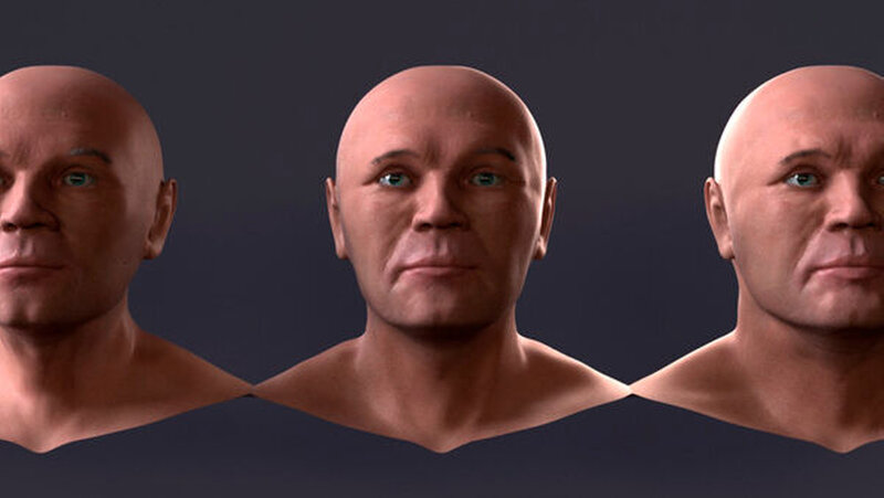 Markante Merkmale des Schädels, wie ausgeprägter Stirnwulst und Wangenknochen, zeichnen sich deutlich in der Rekonstruktion ab. Danach kommt eine weitere Modelliertechnik, das Skulpturieren, zum Einsatz. Hierbei wird das digitale Modell mit verschiedenen plastischen Werkzeugen bearbeitet. Im Grunde funktioniert dieser Prozess wie bei der Verwendung von Modelliermasse: Die Oberfläche wird dabei immer weiter verfeinert und mit den anthropologischen Erkenntnissen über Alter und Gesundheitszustand in Übereinstimmung gebracht.