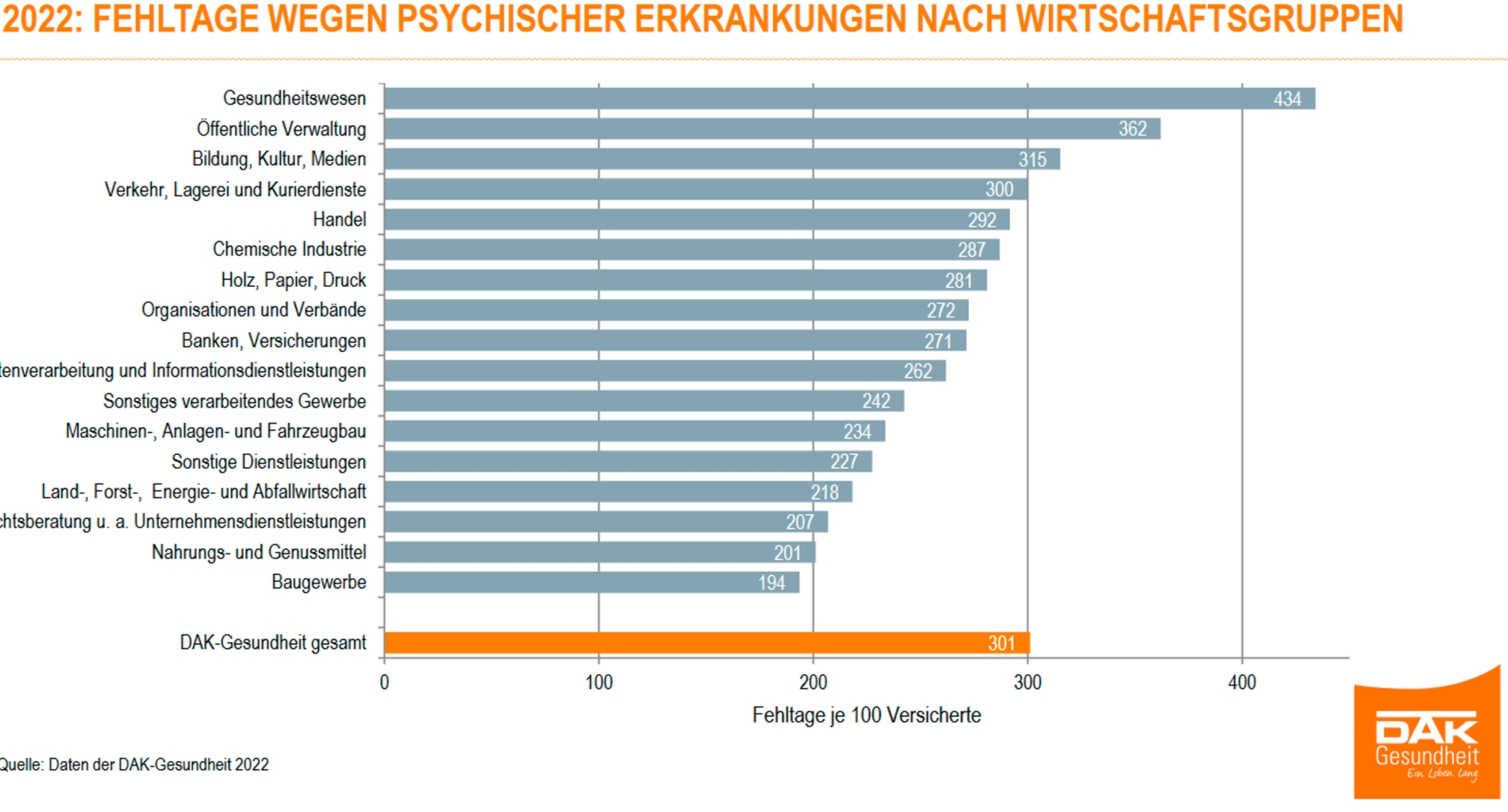 „Der neue Höchststand bei den psychischen Erkrankungen ist besorgniserregend, weil zunehmend auch junge Erwachsene betroffen sind und im Job ausfallen“, bilanziert DAK-Chef Andreas Storm. „Wir müssen Fragen der seelischen Gesundheit am Arbeitsplatz noch mehr Beachtung schenken, insbesondere, wenn es um Auszubildende und junge Beschäftigte geht.“ Die DAK-Gesundheit bietet Unternehmen zum Beispiel eine Resilienzberatung.