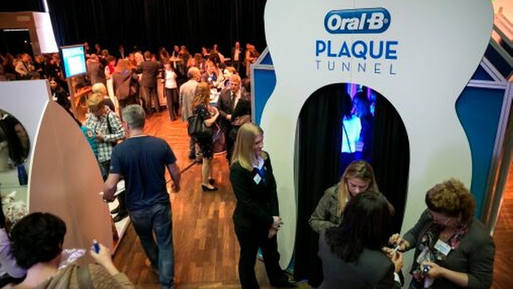 In der anschließenden Pause überzeugten sich viele der Besucher im Oral B Plaque-Tunnel höchstpersönlich von der aktuellen Innovation aus dem Hause Oral-B: der neuen Oral-B CROSS ACTION-Aufsteckbürste. Durch ihre im perfekten Winkel von 16 Grad angeordneten Borsten erfuhren die Teilnehmer eine Mundhygiene auf ganz neuem Niveau – sanft, effizient und gründlich. Denn dank der Schrägstellung seiner Borsten sorgt der CROSS ACTION-Bürstenkopf für optimierte Scherkräfte, ein tieferes Eindringen in die Zahnzwischenräume und für eine bessere Anpassung an die Zahn- sowie Zahnfleischkontur. Darüber hinaus macht das besonders dichte Borstenfeld die Reinigung noch schonender.