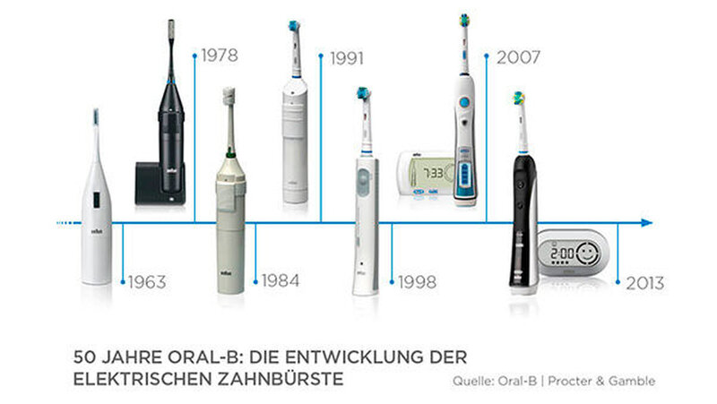 100 Jahre nach der ersten Nutzung des elektrischen Stroms surrten endlich die ersten elektrischen Zahnbürsten in deutschen Badezimmern. Heute rotieren oder vibrieren sie praktisch in aller Munde.