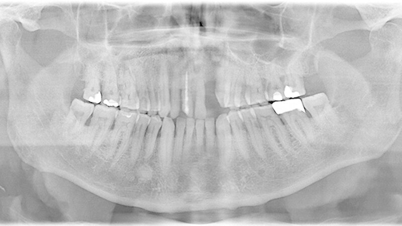 Weiterhin werden eine Therapie-bedürftige Karies an 17 und ein apikal beherdeter 16 diagnostiziert, deren Behandlung ebenfalls durchgeführt wird.