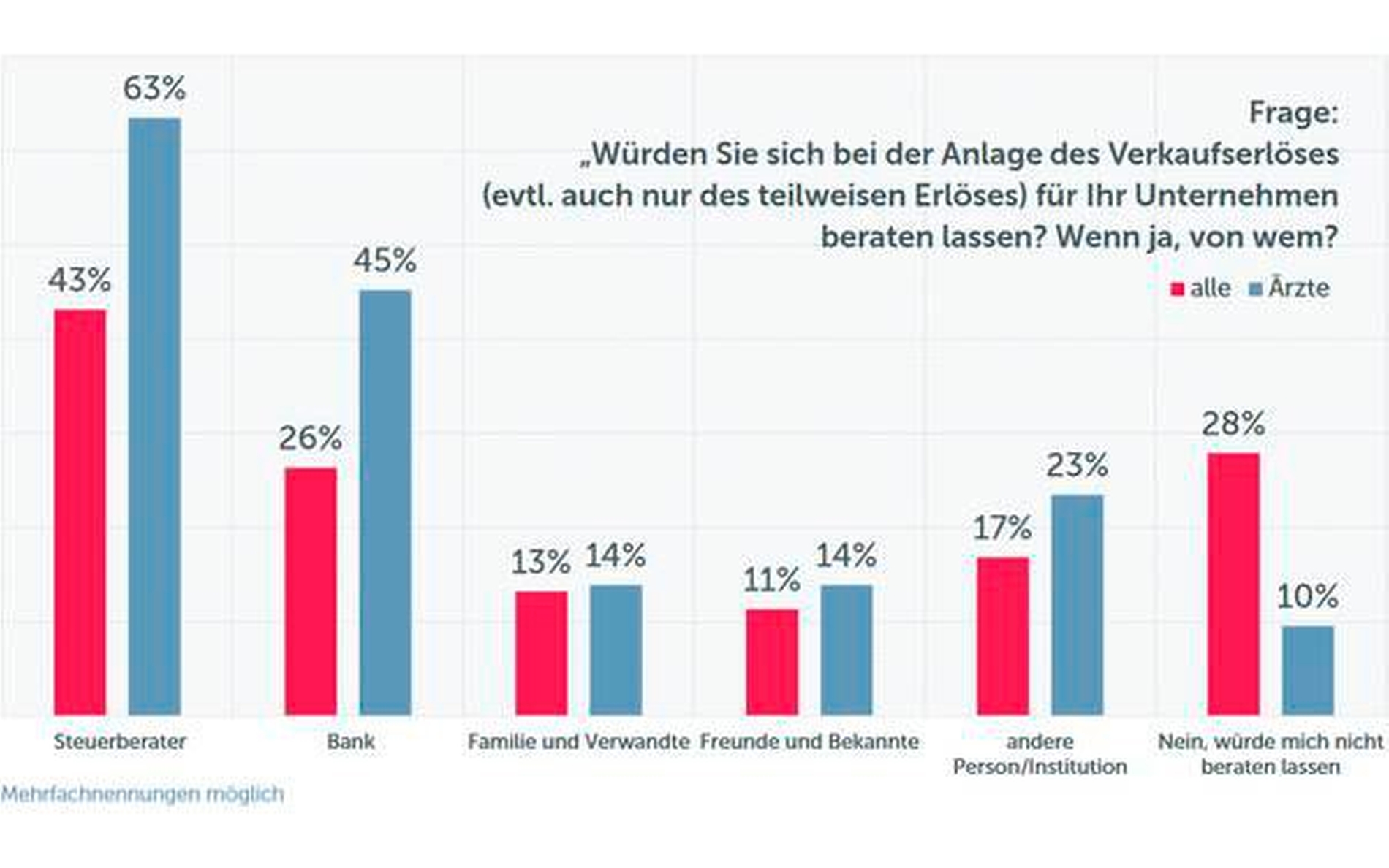 Auf fremden Rat in Finanzfragen wollen Ärzte deutlich häufiger setzen als Selbständige insgesamt. Zu Banken haben sie dabei sogar ein doppelt so hohes Zutrauen.