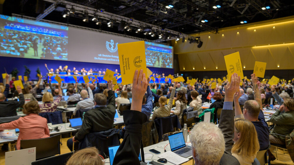 Über 200 Anträge standen zur Diskussion. Eines der großen Themen: eine patientengerechtere und effektivere Steuerung der Gesundheitsversorgung in Deutschland. Patientinnen und Patienten sollten für die primäre Inanspruchnahme ärztlicher Versorgung eine Arztpraxis verbindlich wählen. Diese solle als erste Anlaufpunkt die primärärztliche Versorgung übernehmen sowie die Weiterbehandlung bei Fachärztinnen und Fachärzten in weiteren Versorgungsbereichen koordinieren, heißt es in einem Beschluss der Delegierten. Die primärärztliche Versorgung sollte durch einen Hausarzt erfolgen. Dabei sollte etwa in der gynäkologischen und augenärztlichen Versorgung der unmittelbare Zugang zur fachärztlichen Versorgung erhalten bleiben. Mit Blick auf die Notfallversorgung forderte der Ärztetag die bundesweite Einrichtung vernetzter Leitstellen von ärztlichem Bereitschaftsdienst (116 117) und Rettungsdienst (112).
