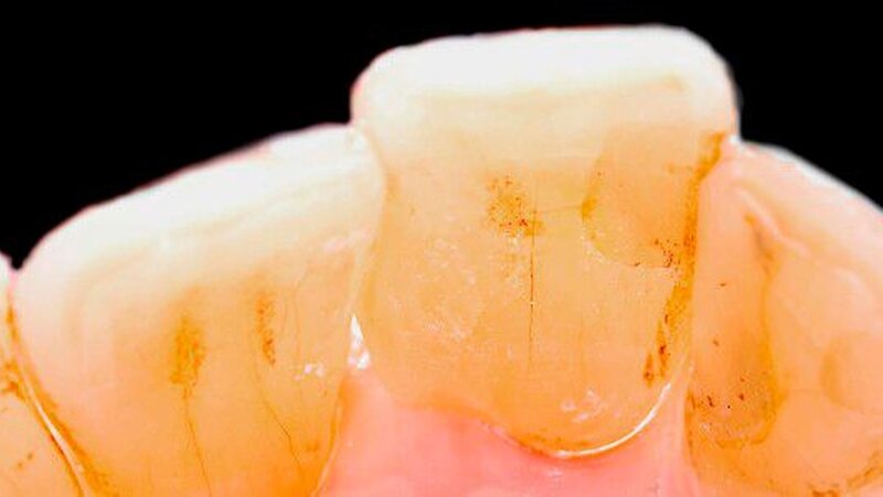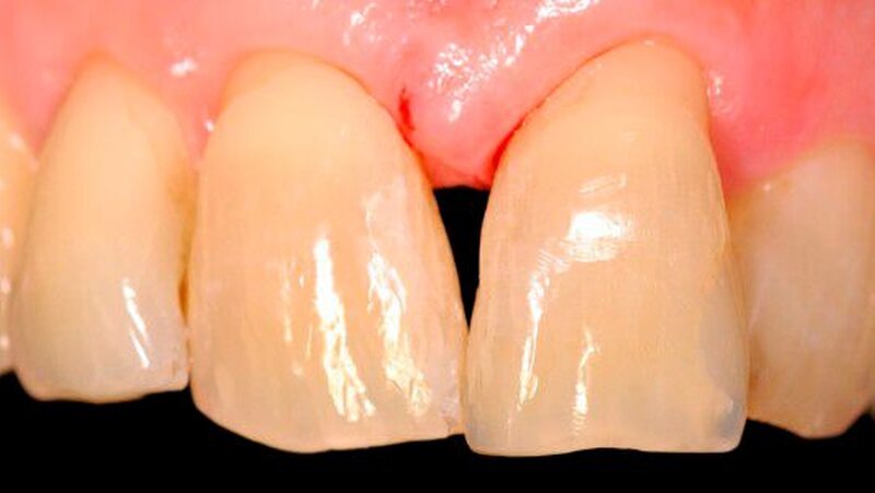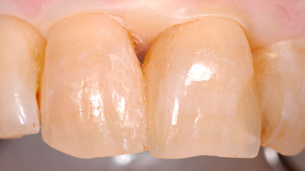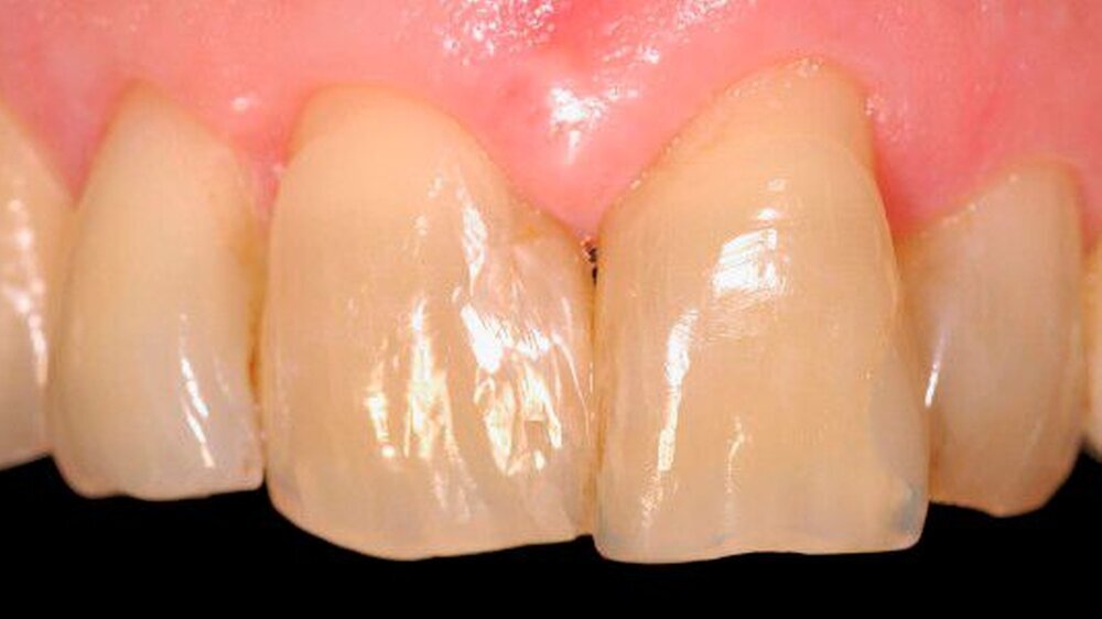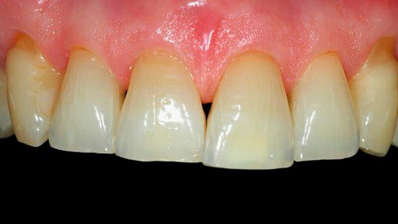 Leider ist das ästhetische Ergebnis trotz sorgfältiger Farbauswahl in einigen Fällen eher unbefriedigend, da die Form der Zähne verändert erscheint. Das Beispiel der Lückenschlüsse belegt anschaulich einen Grundsatz der Ästhetischen Zahnheilkunde: Die Form ist immer wichtiger als die Farbe!