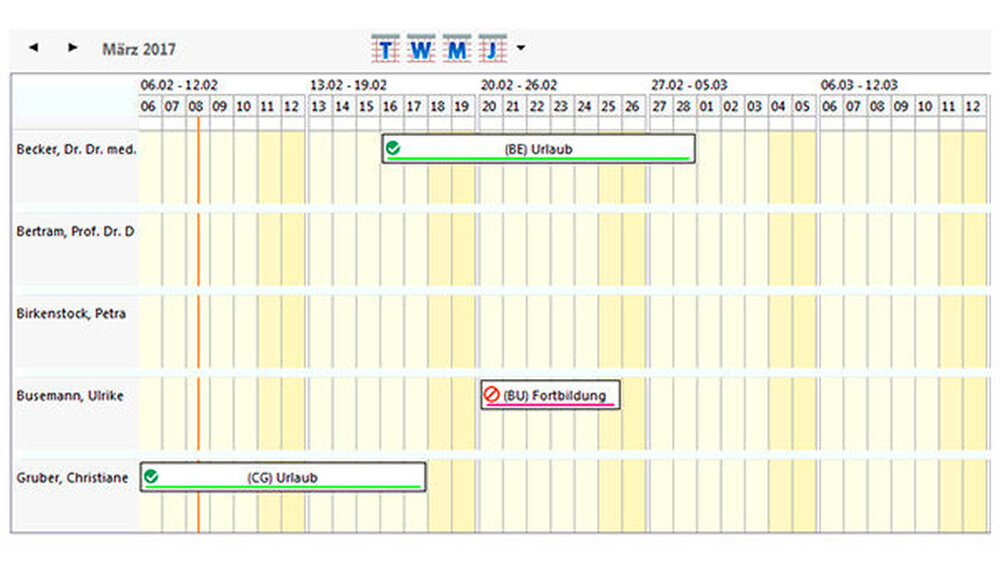 Jeder kann seine Wünsche selbst über den PC einreichen und kann dabei berücksichtigen, wo es mögliche Engpässe im Team gibt. Denn die große Tafel gibt es ja in jedem Computer. Wir können also auf jegliches Papier verzichten, wenn es um Personal und Urlaubsplanung geht.