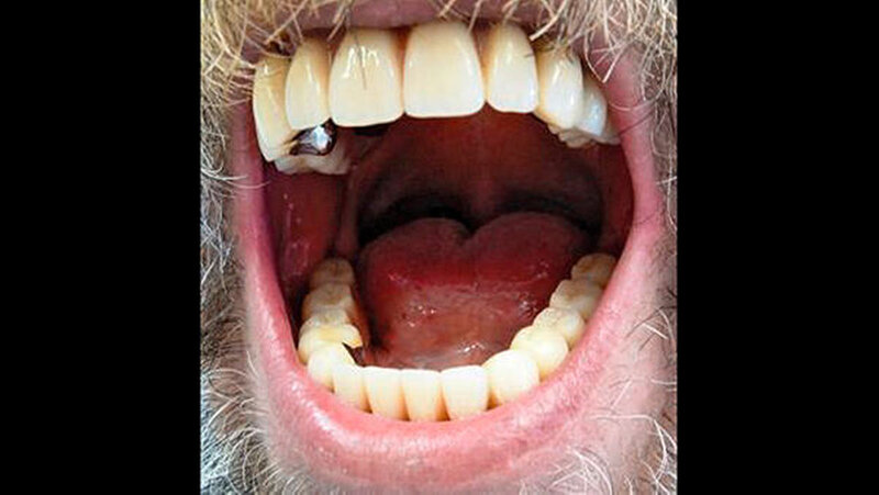 Er achtete auch auf das Biokennzeichen, wie er betonte. Ein halbes Jahr lang war der Patient mit dieser Konstruktion zufrieden. Aber zur Weihnachtszeit gefiel ihm die graue Farbe seiner Silikonbefestigung doch nicht mehr, vielleicht, weil man ihn auch schon auf seine schlechten Zähne angesprochen hatte.