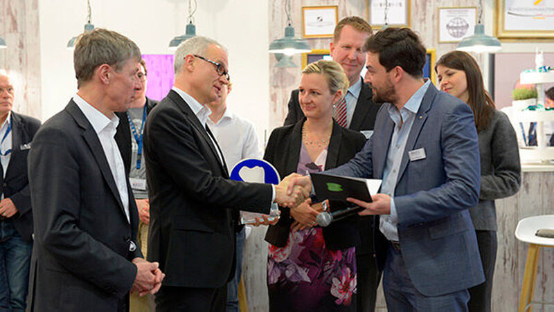 Priv.-Doz. OA Dr. Alexander Welk, Poliklinik für Zahnerhaltung, Parodontologie und Endodontologie im Zentrum für Zahn-, Mund- und Kieferheilkunde der Universität Greifswald, nahm die Ehrung für sein Team vom Vorstand des BdZA am Donnerstag am Stand der BZÄK entgegen.