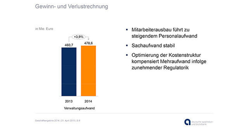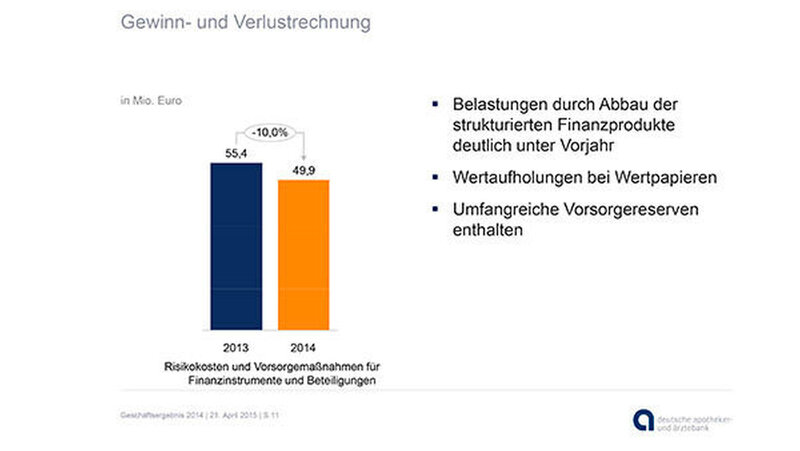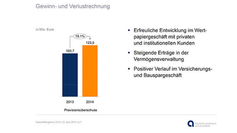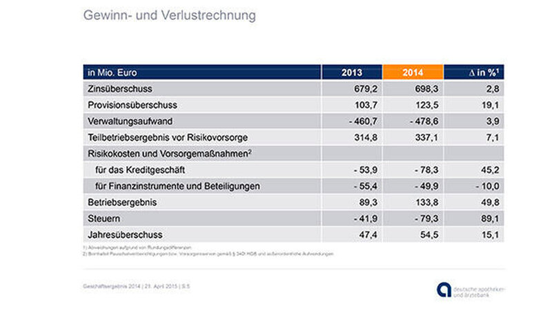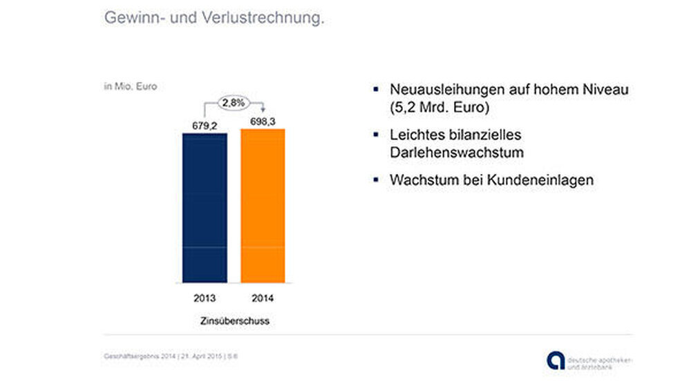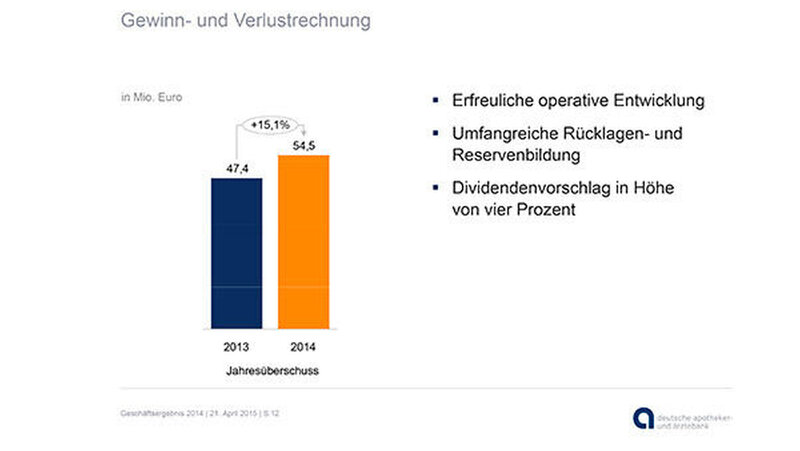Die Bank, sagt Dr. Thomas Siekmann, Finanzvorstand der apoBank, habe in den vergangenen Jahren ein gutes Risikoprofil erarbeitet, was auch das sehr gute Ergebnis des EZB-Stresstests belege. Für das laufende Jahr sollen die guten Ergebnisse von 2014 zementiert werden, vor allem mit einer stärkeren personellen Ausrichtung "in der Fläche". Hier nehme man vor allem die angestellten Heilberufler und die Studenten der akademischen Heilberufe als Zielgruppe ins Visier.