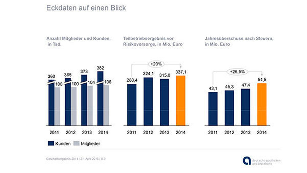 Mit nunmehr 382.000 Kunden habe die Bank ihre hohe Marktdurchdringung weiter ausbauen können, heißt es. Die Marktführerschaft bei den selbstständigen Heilberuflern bleibe damit unangetastet. Auch die Zahl der Mitglieder sei auf 105.864 zum Jahresultimo angestiegen. Die Bank führt den Zuwachs auch auf eine hochgradige Spezialisierung ihrer Kundenberatungen zurück. "Das hat sich bewährt und trägt bereits Früchte", so Pfennig weiter.