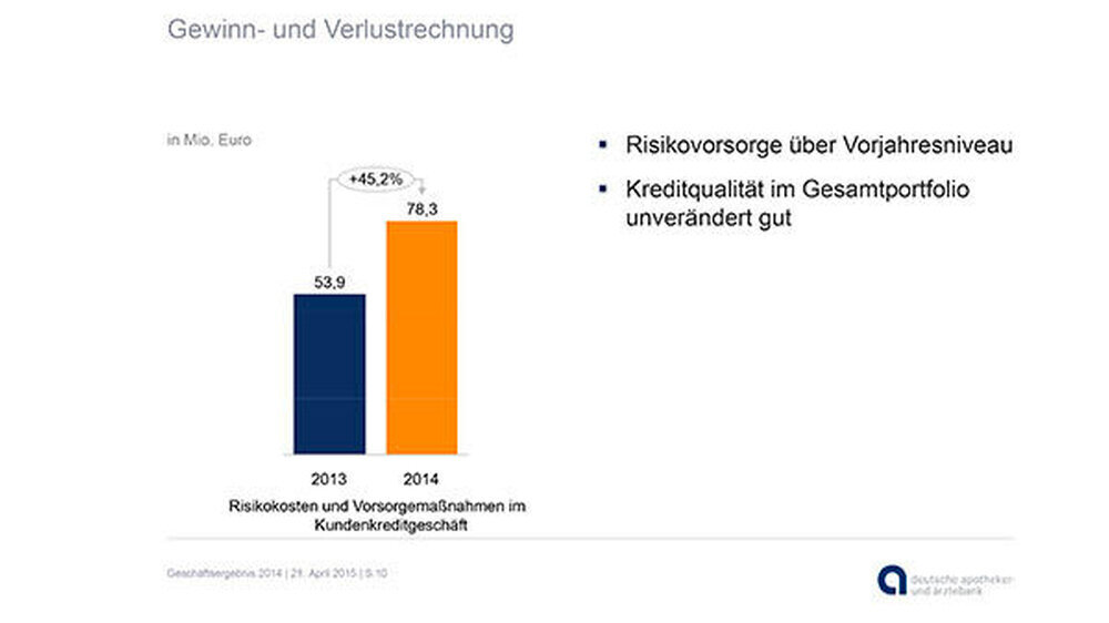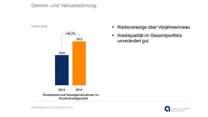 Nach Bankangaben habe man von einer "erfreulichen Entwicklung im Kundengeschäft" profitiert. So stieg das operative Ergebnis, das heißt das Teilbetriebsergebnis vor Risikovorsorge, um 7,1 Prozent auf 337,1 Millionen Euro. Herbert Pfennig, Sprecher des Vorstands, bilanziert: "Wir haben den Wachstumstrend in unserem Kerngeschäft auch 2014 fortgesetzt und unsere operative Ertragskraft untermauert - das betrifft neben unserem Kreditgeschäft neuerdings auch das Anlagegeschäft."