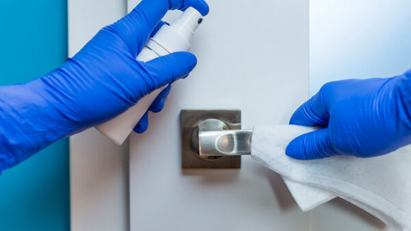 Reinigen und desinfizieren Sie häufig berührte Gegenstände und Oberflächen mit einem handelsüblichen Haushaltsreinigungsspray oder -wischtuch.